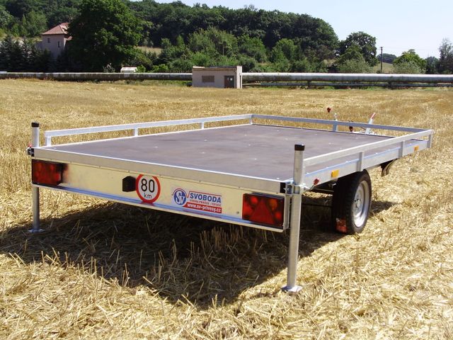 Přívěsy jsou vyráběny jako nebrzděné do 750 kg a brzděné do 1300 kg s ložnou plochou podle počtu a velikosti čtyřkolek.